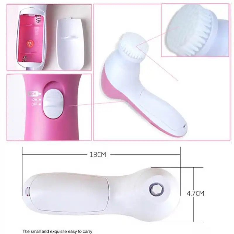 A Escova Elétrica Facial 5 em 1 Vaidosa Demais™ é um aparelho de cuidados faciais desenvolvido para limpeza profunda, renovação celular e estímulo da circulação, utilizando movimento rotativo 360° e 5 acessórios específicos para cada necessidade da sua pele.