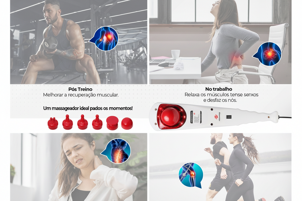 Perfeito para relaxamento diário, pós-treino ou alívio de dores do dia a dia.